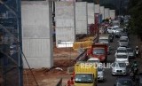 Suasana pembangunan proyek Tol Cimanggis-Cibitung dalam proses penyelesaian di Kawasan Alternatif Cibubur, Jakarta, Kamis (12/4). (FOTO : Republika/Mahmud Muhyidin)