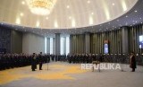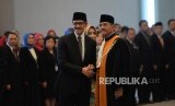 Pelantikan Deputi Gubernur BI. Deputi Gubernur Bank Indonesia Dody Budi Waluyo (kiri)mengikuti pelantikan Deputi Gubernur BI oleh Hakim Agung di Mahkamah Agung, Jakarta, Rabu (18/4). (FOTO : Republika/ Wihdan)