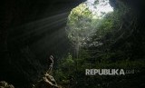Anggota Kelompok Sadar Wisata (pokdarwis) menyusuri gua vertikal di Gua Macan mati, Gunungkidul, DI Yogyakarta, Rabu (18/4). Para anggota Pokdarwis membuka jalur sejumlah gua vertikal untuk mengembangkan wisata minat khusus menusuri gua-gua di kawasan geopark Gunungkidul. (FOTO : Hendra Nurdiansyah/Antara)