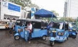 Pengemudi bajaj BBG mengantre mengisi gas di SPBG kawasan Monas, Jakarta, Rabu (18/4). PT Pertamina (Persero) dan PT Perusahaan Gas Negara Tbk (PGAS) atau PGN resmi tergabung dalam Holding Badan Usaha Milik Negara (BUMN) Migas. (FOTO : Muhammad Adimaja/Antara)
