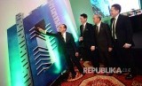 Presiden Direktur PT Medikaloka Hermina Tbk - dr Hasmoro, SpAn berfoto bersama jajaran direksi pada publik eskpos penawaran saham di Jakarta, Rabu (18/4). Pengelola RS Hermina ini akan menawarkan saham perdana sebanyak-banyaknya 351,38 juta saham yang merupakan saham biasa. (FOTO : Yogi Ardhi/Republika)