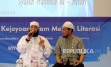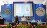 Penulis Internasional asal Mesir Syaikh Mahmud Al Mishri (kiri) memaparkan pendapatnya pada acara Jumpa Penulis Internasional di Jakarta Convention Center (JCC), Jakarta, Kamis (19/4). (FOTO : Republika/Putra M. Akbar)