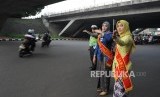 REPUBLIKA.CO.ID, JAKARTA -- Polisi wanita dari Polres Jakarta Timur sedang mengatur lalu lintas dengan mengenakan baju kebaya di kawasan Cawang, Jakarta Timur, Jumat (20/4).