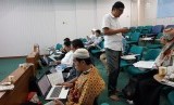Para peserta melakukan praktik dalam workshop Pelatihan Akuntansi Masjid yang digelar Republika dan Institut Akuntansi Masjid, di Masjid Pusdai, Kota Bandung, Sabtu (21/4). (FOTO : Republika/Edi Yusuf)