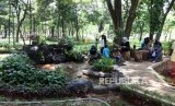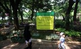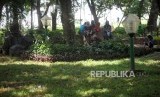 REPUBLIKA.CO.ID, JAKARTA -- Pengunjung menikmati suasana di Taman Monas Bagian Barat, Jakarta, Ahad (22/4).