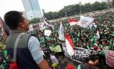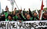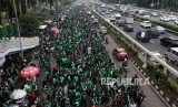 REPUBLIKA.CO.ID, JAKARTA -- Massa yang tergabung dalam Gerakan Roda Dua (Garda) melakukan aksi unjuk rasa di depan Gedung DPR, Jakarta, Senin (23/4).