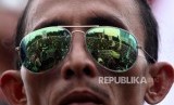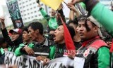 Massa yang tergabung dalam Gerakan Roda Dua (Garda) melakukan aksi unjuk rasa di depan Gedung DPR, Jakarta, Senin (23/4). (FOTO : Republika/Mahmud Muhyidin)