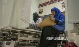 Seorang pelajar didampingi guru pengawas mengerjakan soal Ujian Nasional berbasis Kertas dan Pensil (UNKP) saat dirawat di RSUP Hasan Sadikin (RSHS), Bandung, Jawa Barat, Senin (23/4). Dinas Pendidikan Kota Bandung memfasilitasi dua pelajar yang dirawat di rumah sakit RSHS dan Sartika Asih untuk mengikuti ujian nasional serentak dengan total sebanyak 37.186 siswa Sekolah Menengah Pertama (SMP) se Kota Bandung mengikuti UNBK dan UNKP. (FOTO : Novrian Arbi/Antara)