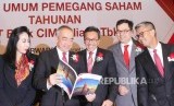 Presiden Komisaris CIMB Niaga Dato’ Sri Nazir Razak (kedua kiri) berbicang dengan Presiden Direktur CIMB Niaga Tigor M. Siahaan (tengah), Direktur Strategy and Finance CIMB Niaga Wan Razly (kedua kanan) , Komisaris CIMB Niaga Tengku Dato' Sri Zafrul Tengku Abdul Aziz (kanan) dan Direktur Compliance, Corporate Secretary, and Legal CIMB Niaga Fransiska Oei (kiri), disela Rapat Umum Pemegang Saham Tahunan (RUPST) CIMB Niaga di Jakarta, Selasa (24/4/2018). (FOTO : Darmawan / Republika)