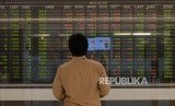 IHSG Ditutup Melemah. Layar besar menunjukan pergerakan harga saham di Jakarta, Selasa (24/4). (FOTO : Republika/ Wihdan)