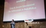 Presentasi Head of Payment and Financial Service Bukalapak Destya Pradityo, pada acara BukaTalks 2018: “Millennial Millionaire” di Jakarta, Selasa (24/4). Bukalapak mendorong tren investasi digital bagi kaum milenial melalui fitur Bukareksa. (FOTO : Dok Bukalapak)