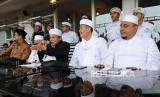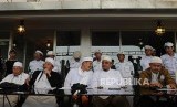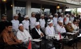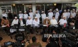REPUBLIKA.CO.ID, JAKARTA -- Anggota Tim 11 Alumni 212 memberikan klarifikasi terkait pertemuan dengan Presiden Jokowi pada konferensi pers di kawasan Tebet, Jakarta, Rabu (25/4).