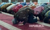 Gubernur Jawa Barat Ahmad Heryawan melakukan sujud syukur di masjid pemprov Jawa Barat, komplek Gedung Sate, Kota Bandung, atas diraihnya penghargaan Parasamya Purnakarya Nugraha dari Presiden Republik Indonesia atas prestasi kinerja tertinggi secara nasional, Kamis (26/4). (FOTO : Republika/Edi Yusuf)