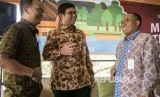 Direksi bank bjb Syariah Toto Susanto (kiri), Indra Indra Falatehan (tengah) dan Didit Supriyadi berbincang usai jumpa pers di Dusun Bambu, Kabupaten Bandung Barat, Jawa Barat, Kamis (26/4). PT. Bank BJB Syariah berhasil mencatat laba bersih Rp6,8 miliar di triwulan I 2018 yang meningkat 250,2 persen year on year yang bersumber dari pertumbuhan pendapatan margin bersih sebesar Rp94,9 miliar. (FOTO : Novrian Arbi/Antara)