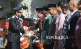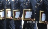 Petugas Direktorat Jendral Pemasyarakatan menerima penghargaan dalam upacara hari bakti pemasyarakatan ke 54 di Kantor Direktorat Jendral Pemasyarakatan, Jakarta, Jumat (27/4). (FOTO : Republika/Iman Firmansyah)