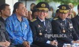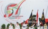 Kepala BNN, Heru Winarko, Menteri Hukum dan HAM RI, Yasonna H. Laoly, Plt Direktur Jenderal Pemasyarakatan Mardjoeki, dalam upacara hari bakti pemasyarakatan ke 54 di Kantor Direktorat Jendral Pemasyarakatan, Jakarta, Jumat (27/4). (FOTO : Republika/Iman Firmansyah)