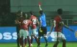 Pertandingan diwarnai kartu merah bagi pemain Indonesia Rezaldi Hehanusa..
