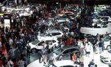 Pegunjung memadati hari terakhir Indonesia International Motor Show (IIMS) 2018 di JiExpo, Jakarta, Ahad (29/4). Hingga Jumat (27/4) jumlah transaksi di IIMS mencapai Rp 2,5 triliun. Tercatat 7.134 unit mobil dan 874 unit motor. Dan diprediksi transaksi akan mencapai Rp 3,3 triliun pada penutupan. (FOTO : Wihdan Hidayat/Republika)