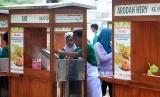 Sejumlah pedagang mie melayani para tamu dan pengunjung usai acara penyerahan gerobak mie di Taman Jogging,Summarecon Kelapa Gading, Jakarta, Sabtu (28/4). Kegiatan ini merupakan salah satu bentuk komitmen PT Summarecon Agung Tbk untuk turut membangun bangsa dengan memperkuat ekonomi kerakyatan melalui pemberdayaan UMKM. (FOTO : Prayogi/Antara)