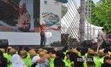 Tokoh lingkungan hidup nasional, Emil Salim memberi semangat kepada anak-anak peserta Jambore Adiwiyata di Astra mengadakan Festival KBA pada 27-28 April 2018 di Cibinong Science Center-Botanical Garden LIPI, Cibinong, Bogor. Sabtu (28/4). PT Astra International Tbk mengembangkan 300 Kampung Berseri Astra (KBA) menuju Desa Sejahtera yang tersebar di 100 kabupaten se-Indonesia. (FOTO : Dok Astra)