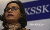 Menteri Keuangan Sri Mulyani memberikan keterangan pers seusai pertemuan forum Komite Stabilitas Sistem Keuangan (KSSK) triwulan I-2018 di Kompleks Perkantoran BI, Jakarta, Senin (30/4). Sistem keuangan Indonesia dinilai stabil dan terkendali di triwulan I-2018 meski mengahadapi tekanan pasar keuangan yang mengalami peningkatan. (FOTO : Hafidz Mubarak/Antara)