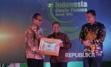 Pemimpin Grup Syariah PT Bank DKI, Harijanto (tengah) bersama Chief Editor Warta Ekonomi, Muhamad Ihsan (kiri) dan Chief Operation Officer Warta Ekonomi, Bram S Putro (kanan) menerima Penghargaan Indonesia Syariah Finance Award oleh Warta Ekonomi pada kategori “TOP 5 Customer Choice Sharia Business Unit 2018” di Jakarta (30/04). (FOTO : Dok Bank DKI)