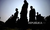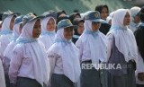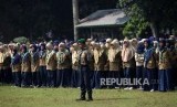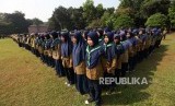 Sejumlah pelajar mengikuti acara Kemah Pendidikan dan Apel Kebangsaan Pemuda Indonesia Di Lapangan PPPON Cibubur, Jakarta, Rabu (2/5). (FOTO : Republika/Mahmud Muhyidin)