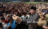 Menteri Pemuda dan Olahraga Imam Nahrawi berfoto selfie dengan para pelajar seusai apel saat acara Kemah Pendidikan dan Apel Kebangsaan Pemuda Indonesia Di Lapangan PPPON Cibubur, Jakarta, Rabu (2/5). (FOTO : Republika/Mahmud Muhyidin)