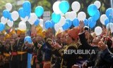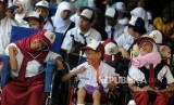 Sejumlah pelajar berkebutuhan khusus menghadiri upacara peringatan Hari Pendidikan Nasional di Kantor Kementerian Pendidikan dan Kebudayaan, Jakarta, Rabu (2/5). (FOTO : Republika/Putra M. Akbar)