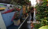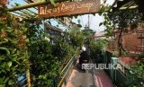 Warga melintas di antara dinding yang dihiasi tanaman hias di Kampung Pelangi Kawasan Johar Baru, Jakarta, Rabu (2/5). (FOTO : Republika/Mahmud Muhyidin)