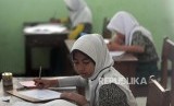 Pelajar melaksanakan Ujian Sekolah Berstandar Nasional (USBN) di Madrasah Ibtidaiyah (MI) Attahiriyah II, Pasar Minggu, Jakarta, Kamis (3/5). (FOTO : Republika/Putra M. Akbar)