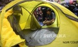 REPUBLIKA.CO.ID, JAKARTA -- Pengunjung melihat-lihat produk outdoor saat pameran Indonesia Outdoor Festival (Indofest) 2018 di Hall B Jakarta Convention Center (JCC), Jakarta, Kamis (3/5).