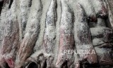 Daging hiu yang sedang dalam proses pengolahan di Muara Angke, Jakarta Utara, Jumat (4/5). (FOTO : Republika/Putra M. Akbar)
