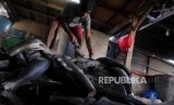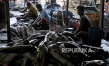 Pekerja saat mengolah hiu yang sudah ditangkap di Muara Angke, Jakarta Utara, Jumat (4/5). (FOTO : Republika/Putra M. Akbar)
