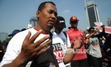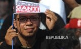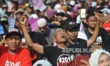 Ekpresi massa yang tergabung relawan nasional 2019 ganti presiden saat mengikuti deklarasi akbar relawan nasional #2019GantiPresiden di Taman Aspirasi Monas, Jakarta, Ahad (6/5). (FOTO : Republika/Iman Firmansyah)