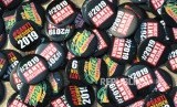 Pin bertuliskan 2019 Ganti Presiden dijual oleh pedagang dalam acara deklarasi akbar relawan nasional #2019GantiPresiden di Taman Aspirasi Monas, Jakarta, Ahad (6/5). (FOTO : Republika/Iman Firmansyah)