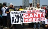 Massa dengan kaos bertuliskan "2019 Ganti Presiden" mulai memadati lokasi. Kegiatan ini beberapa kali berpindah lokasi.