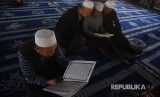 Sejumlah muslim Ningxia membaca Alquran sebelum salat Ashar Masjid Najiahu, Ningxia, Tiongkok, Minggu (6/5). (FOTO : Zabur Karuru/Antara)