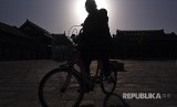 Umat Islam Ningxia menaiki sepedanya usai mengikuti salat Ashar Masjid Najiahu, Ningxia, Tiongkok, Rabu (3/5). (FOTO : Zabur Karuru/Antara)