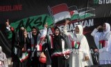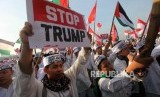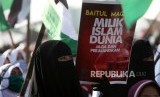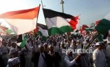 Massa umat muslim mengikuti aksi Indonesia Bebas Al-Quds 115 di Monumen Nasional, Jakarta, Jumat (11/5). (FOTO : Republika/Mahmud Muhyidin)