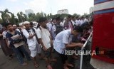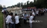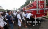 Umat muslim mengantre mengambil wudhu untuk melaksanakan shalat jumat seusai mengikuti aksi Indonesia Bebas Al-Quds 115 di Monumen Nasional, Jakarta, Jumat (11/5). (FOTO : Republika/Mahmud Muhyidin)