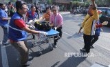 Petugas mengevakuasi korban di lokasi ledakan di Gereja Kristen Indonesia, Jalan Diponegoro, Surabaya, Jawa Timur, Minggu (13/5). (FOTO : Didik Suhartono/Antara)