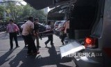 Polisi mengevakuasi korban ledakan dari berbagai lokasi ledakan..