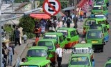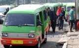 REPUBLIKA.CO.ID, BOGOR -- Sejumlah angkutan kota (angkot) menunggu penumpang di depan Stasiun Bogor, Kota Bogor, Jawa Barat, Ahad (13/5).
