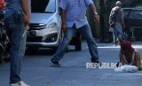 REPUBLIKA.CO.ID, SURABAYA -- Polisi menghentikan dan memeriksa warga yang melintas di Jalan Niaga Samping setelah terjadi ledakan di Polrestabes Surabaya, Jawa Timur, Senin (14/5).