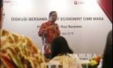 Chief Economist CIMB Niaga Adrian Panggabean menyampaikan paparannya kepada rekan-rekan media pada acara diskusi ekonomi, bertajuk “Ekonomi Domestik Ralatif Stabil” di Jakarta, Senin (14/5). (FOTO : Darmawan/Republika)