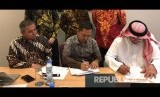 Vice President Realty PP Properti Rudi Harsono menyaksikan CEO PT Arvada Nanang Supriadi menandatangani perjanjian penjualan tiga tower apartemen PP Pro di Jakarta, Ahad (13/5) (FOTO : Dok PP Pro)