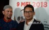 Nonton Bareng Sandiaga Uno. Wakil Gubernur DKI Jakarta Sandiaga Uno (tengah) memberikan keterangan pers usai menonton Film The Power of Love di Jakarta, Senin (15/5). (FOTO : Republika/ Wihdan)
