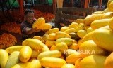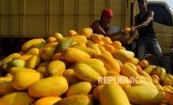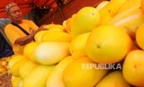 REPUBLIKA.CO.ID, JAKARTA -- Pedagang merapikan buah timun suri di Pasar Induk Kramat Jati, Jakarta, Selasa (15/5).