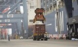 Pelepasan Ekspor Manufaktur. Kapal kontainer ukuran raksasa CMA CGM mengisi muatan di Pelabuhan Tanjung Priok, Jakarta, Selasa (15/5). (FOTO : Republika/ Wihdan)